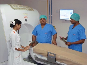 Once the tratment plan is ready patient is shifted to gamma knife suite for radiation with Gamma Knife.